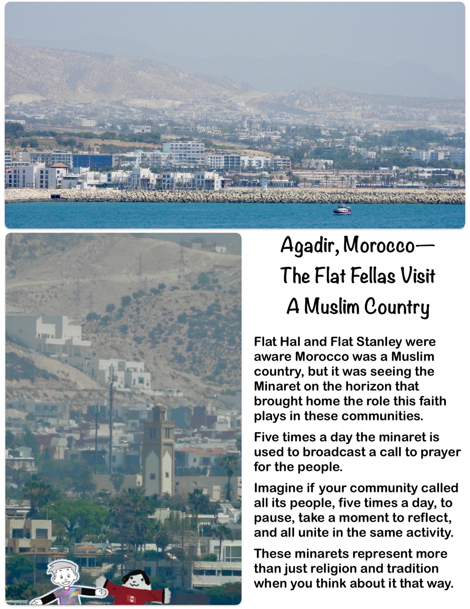 Flat Hal and Flat Stanley were aware Morocco was a Muslim country, but it was seeing the Minaret on the horizon that brought home the role this faith plays in these communities.